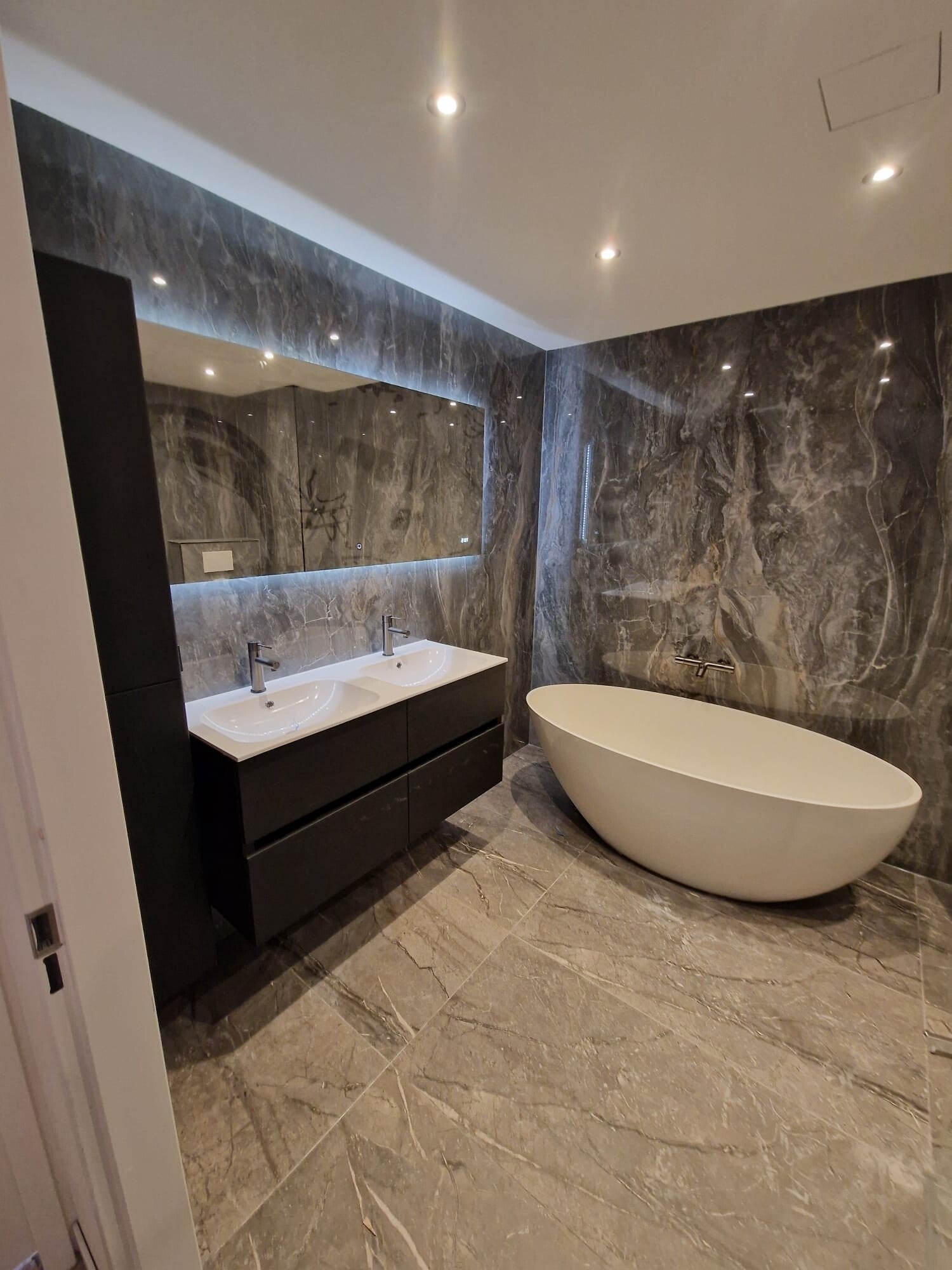 Kitwerk van natuursteen bij tegel/wand- en vloeraansluitingen in de badkamer en bij tuintegels. Dit is mijn specialiteit en word ik vaak voor ingehuurd door grote bedrijven die alleen met natuursteen werken.